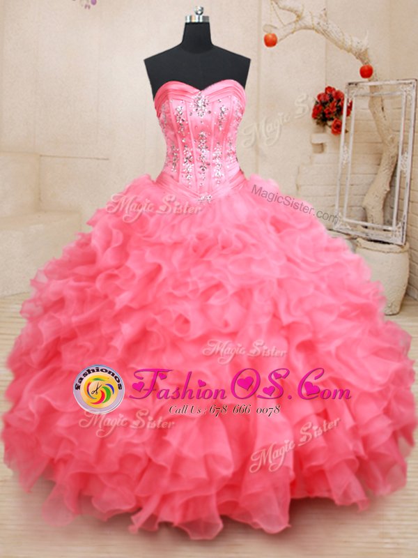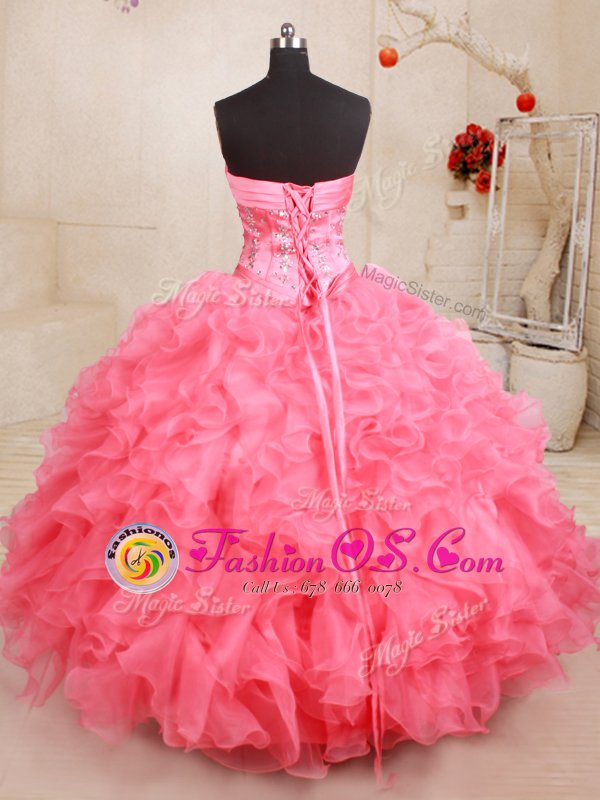 Pink Sleeveless Organza Lace Up Vestidos de Quinceanera for Military Ball and Sweet 16 and Quinceanera