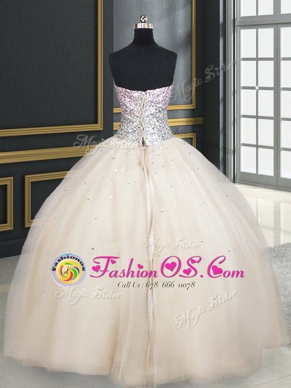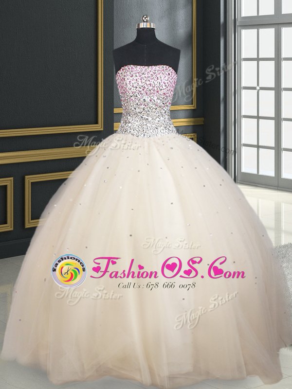 Flare Champagne Strapless Neckline Beading Quinceanera Dresses Sleeveless Lace Up