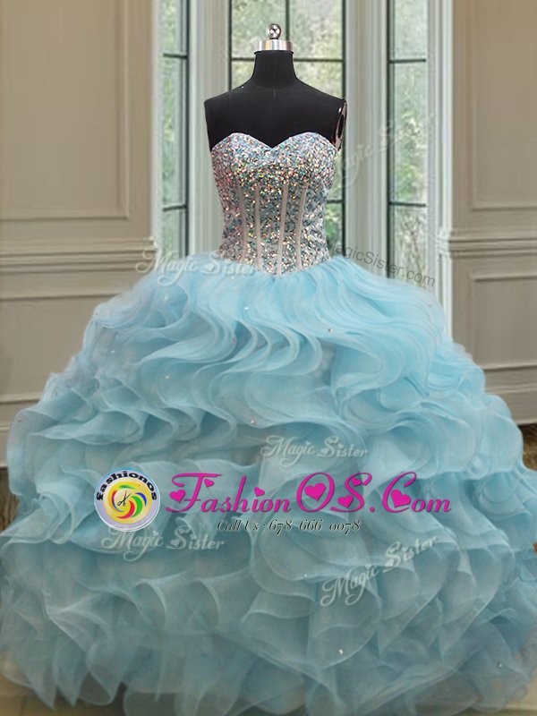 Sequins Floor Length Light Blue Sweet 16 Dress Sweetheart Sleeveless Lace Up