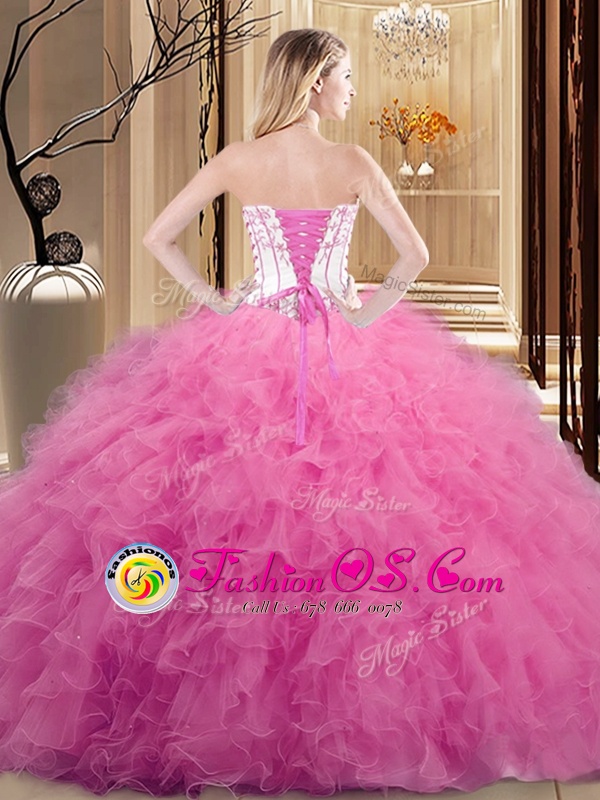 Sweet Organza Sleeveless Floor Length 15 Quinceanera Dress and Embroidery and Ruffled Layers