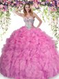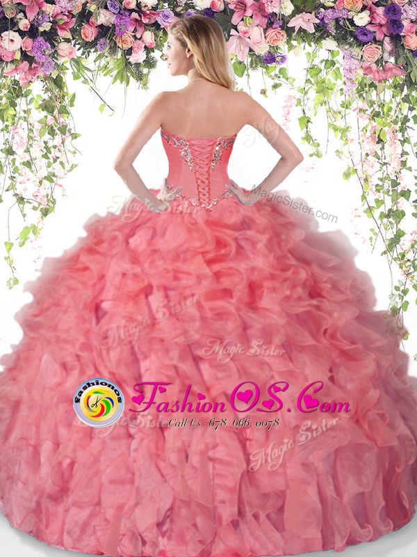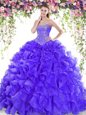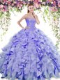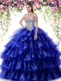 Super Floor Length Blue And White Quinceanera Gown Organza Sleeveless Beading and Ruffles