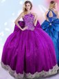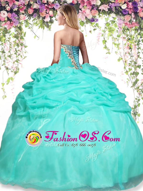 Sleeveless Organza Floor Length Lace Up Quinceanera Gowns in Lavender for with Beading and Pick Ups