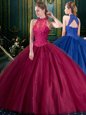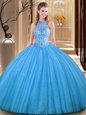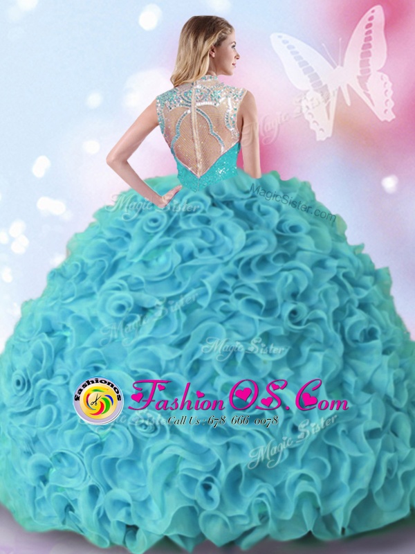 Deluxe High-neck Sleeveless Zipper 15 Quinceanera Dress Aqua Blue Organza