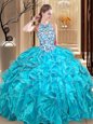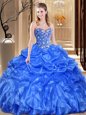 Decent Multi-color Organza Lace Up Sweetheart Sleeveless Floor Length Quince Ball Gowns Beading and Ruffles