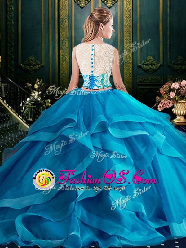 Classical Scoop Lace and Ruffles 15 Quinceanera Dress Fuchsia Lace Up Sleeveless With Brush Train