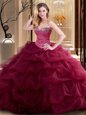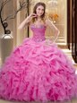 Orange Backless Scoop Embroidery and Ruffles Quinceanera Dress Organza Sleeveless
