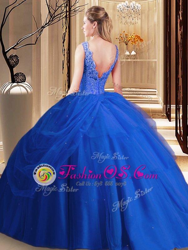 Amazing Sleeveless Tulle Floor Length Backless Sweet 16 Dress in Purple for with Appliques and Pick Ups