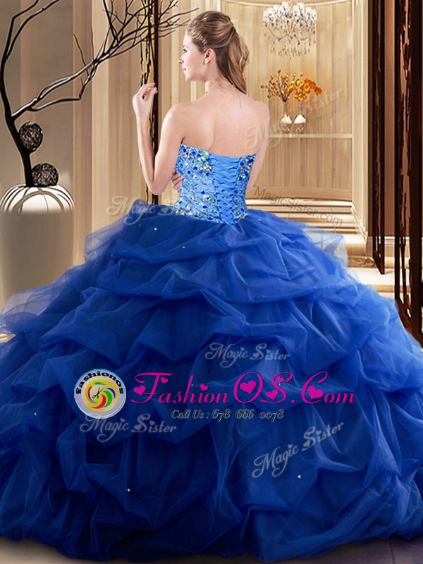 Royal Blue Sleeveless Tulle Lace Up Quinceanera Dress for Military Ball and Sweet 16 and Quinceanera
