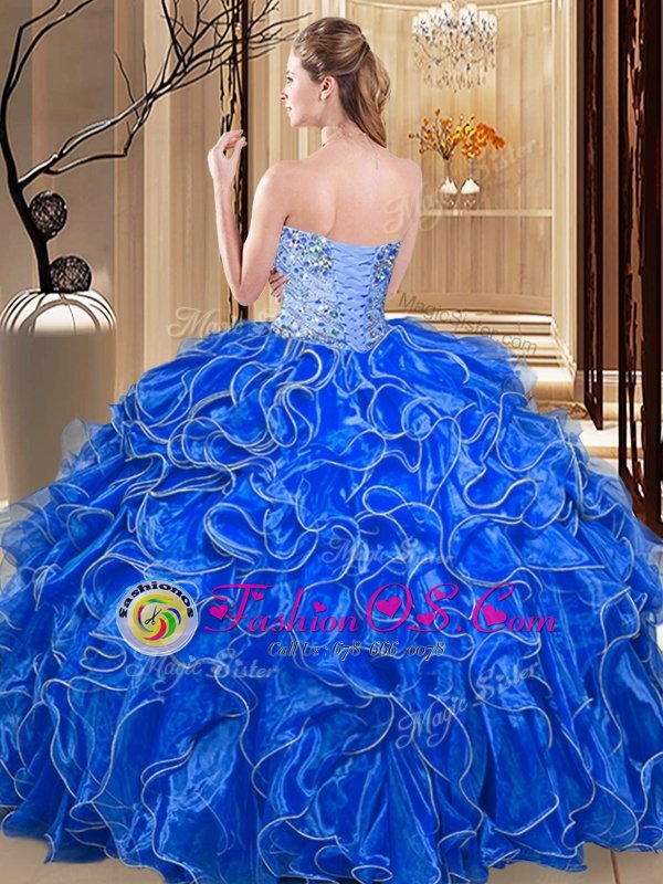 New Style Aqua Blue Sweetheart Neckline Beading and Ruffles Vestidos de Quinceanera Sleeveless Lace Up