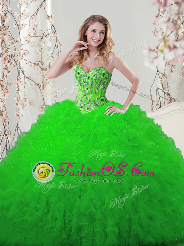 Glorious Sweetheart Lace Up Embroidery and Ruffles Quinceanera Gowns Sleeveless