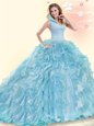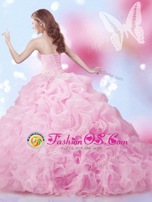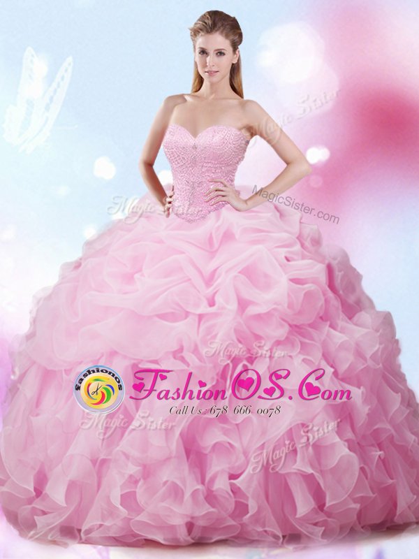 Glorious Scoop Sleeveless Floor Length Beading and Ruffles and Pick Ups Lace Up Quince Ball Gowns with Champagne