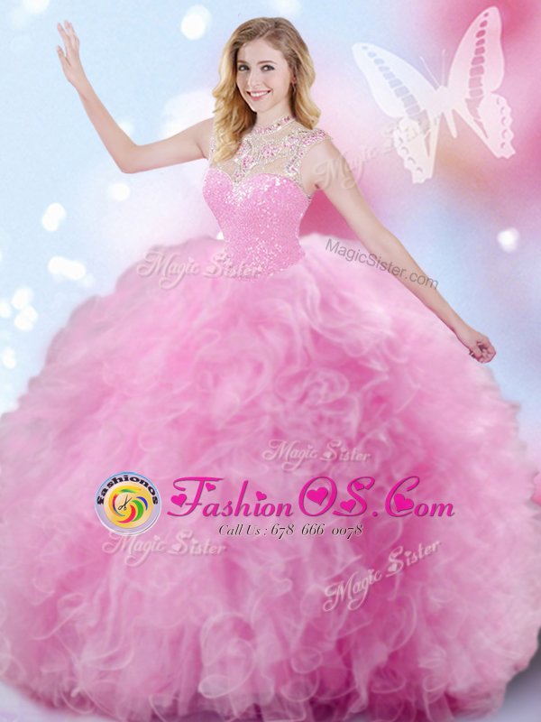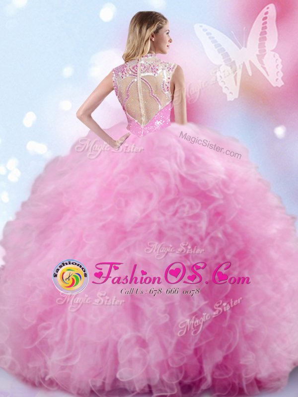 Decent Beading and Ruffles and Pick Ups Quinceanera Dresses Rose Pink Zipper Sleeveless Floor Length