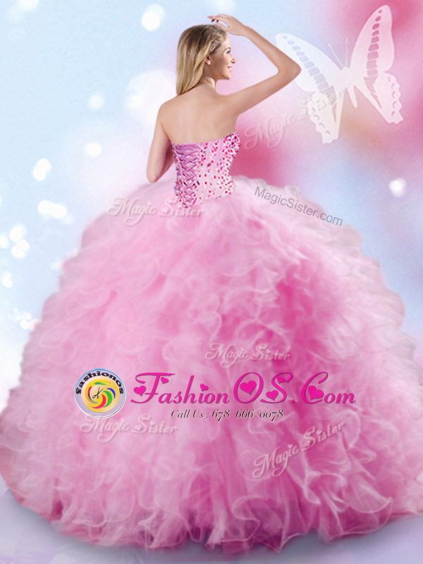 Attractive Floor Length Ball Gowns Sleeveless Rose Pink Vestidos de Quinceanera Lace Up