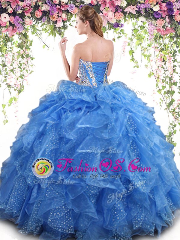 Discount Coral Red Sleeveless Organza Lace Up Ball Gown Prom Dress for Military Ball and Sweet 16 and Quinceanera
