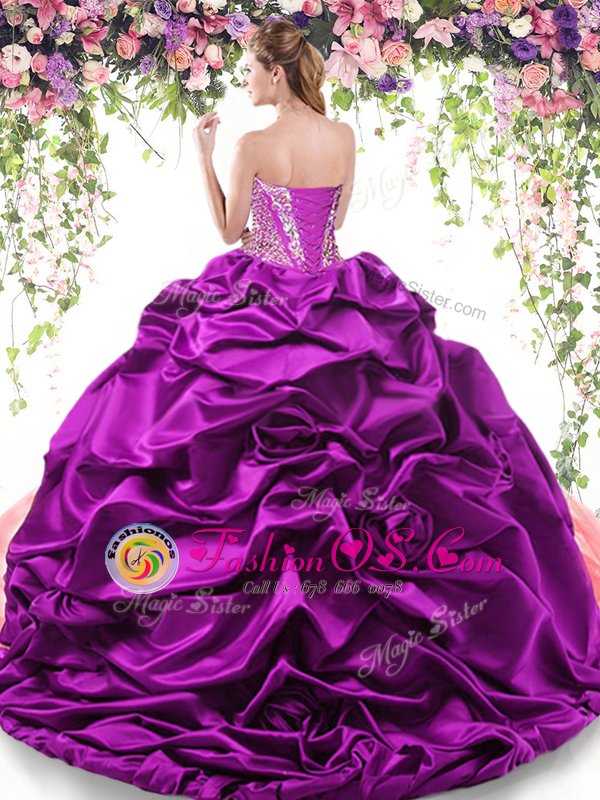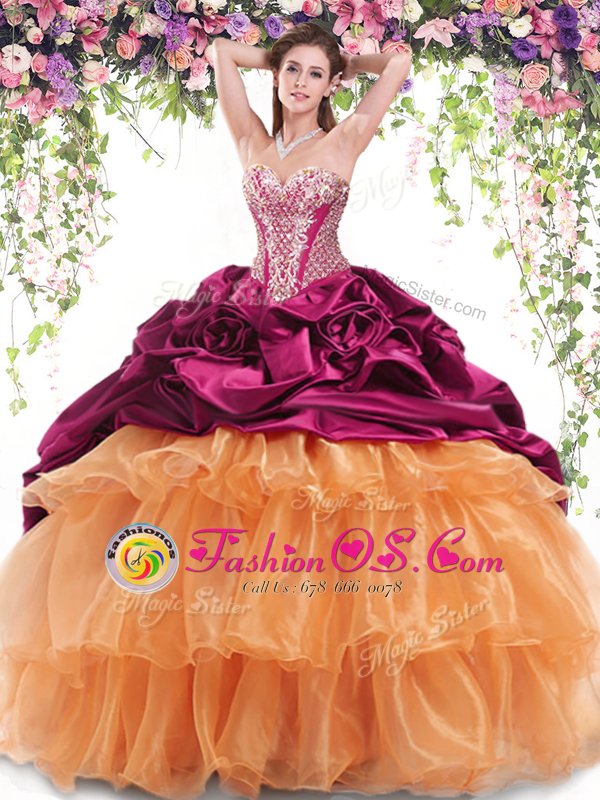 Enchanting Organza and Taffeta Sweetheart Sleeveless Brush Train Lace Up Beading and Ruffled Layers and Pick Ups Vestidos de Quinceanera in Multi-color