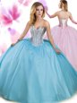 Best Aqua Blue Sleeveless Floor Length Beading and Ruffles Backless Quinceanera Gown