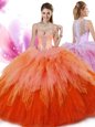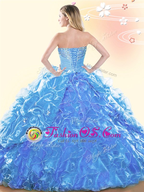 Pretty Baby Blue Organza Lace Up Sweetheart Sleeveless Floor Length Sweet 16 Quinceanera Dress Beading and Ruffles and Pick Ups