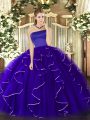 Deluxe Rose Pink Lace Up Beading and Ruffles 15th Birthday Dress Sleeveless