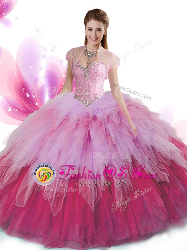 Custom Made Lilac Lace Up High-neck Beading and Ruffles Sweet 16 Quinceanera Dress Tulle Sleeveless