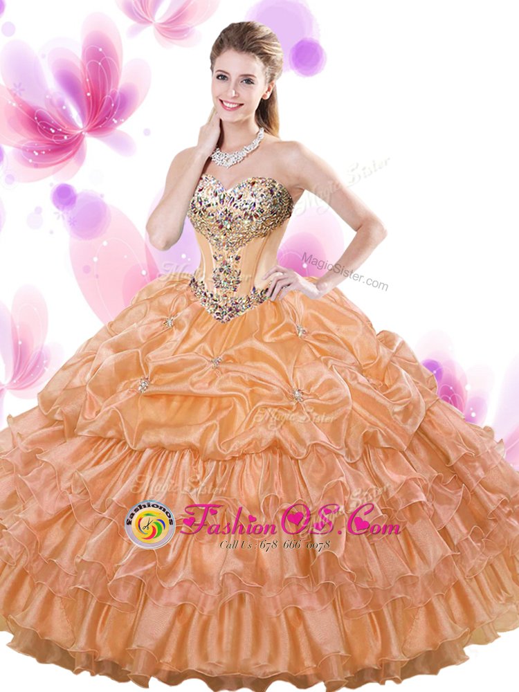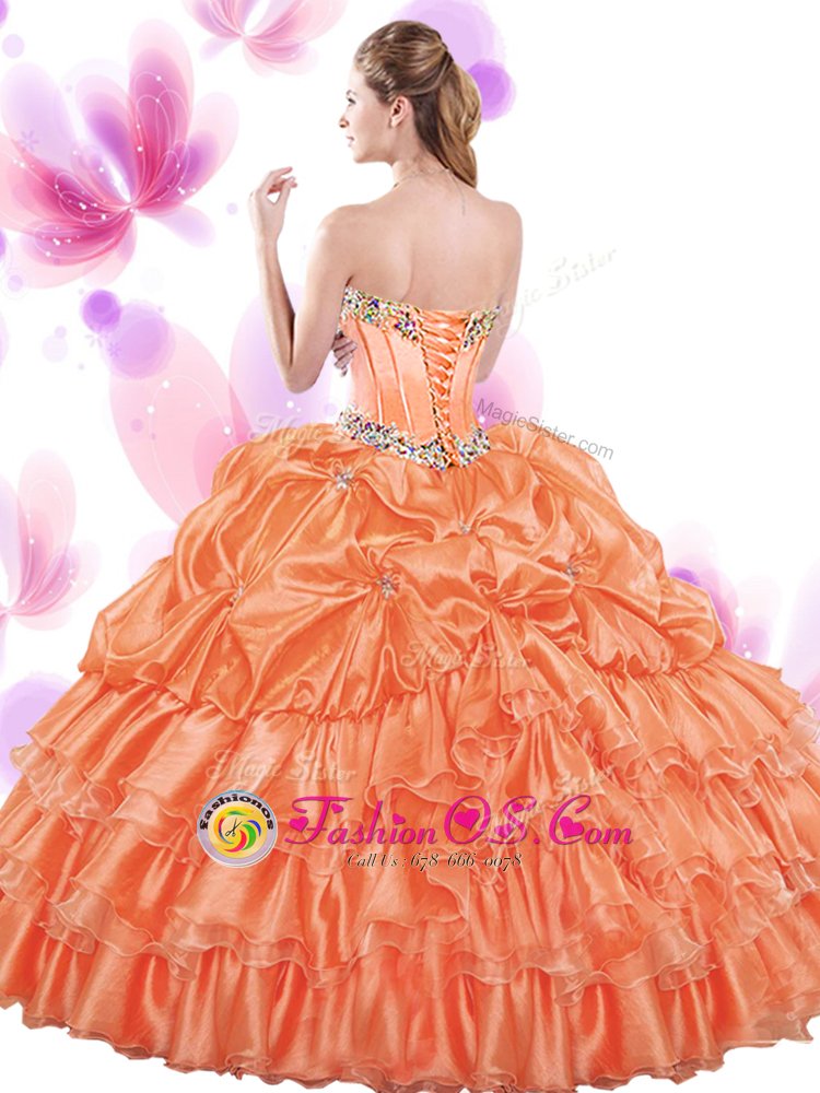 Floor Length Lace Up Quinceanera Dresses Watermelon Red and In for Military Ball and Sweet 16 and Quinceanera with Beading and Ruffled Layers and Pick Ups