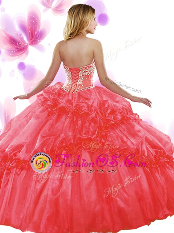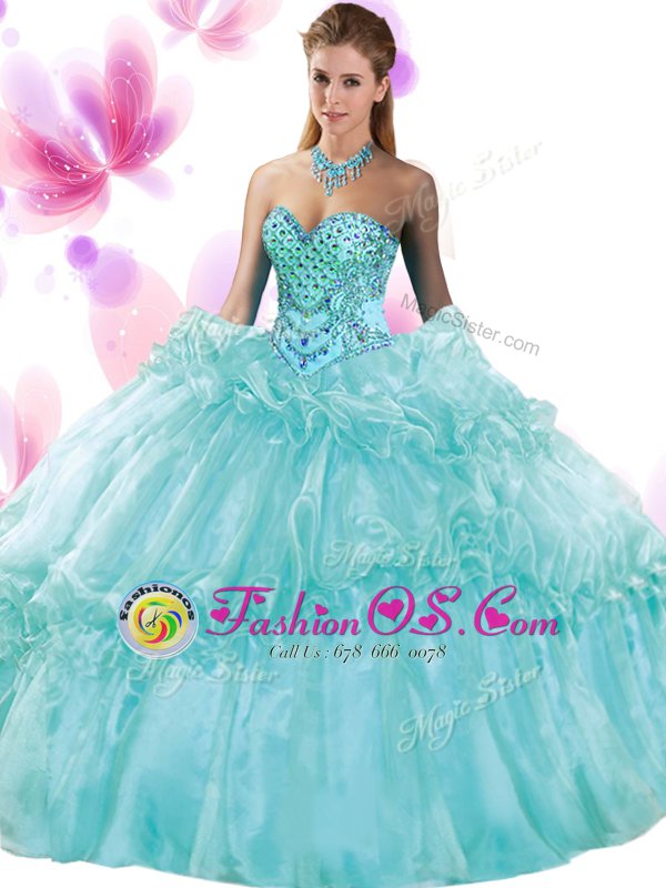 Latest Aqua Blue Organza Lace Up Quinceanera Dresses Sleeveless Floor Length Pick Ups