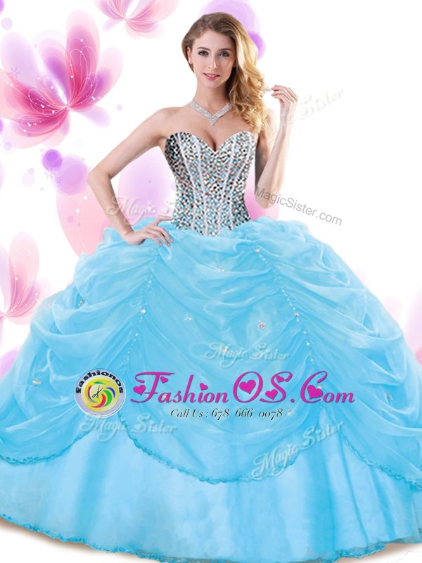 Beading and Pick Ups Sweet 16 Quinceanera Dress Baby Blue Lace Up Sleeveless Floor Length