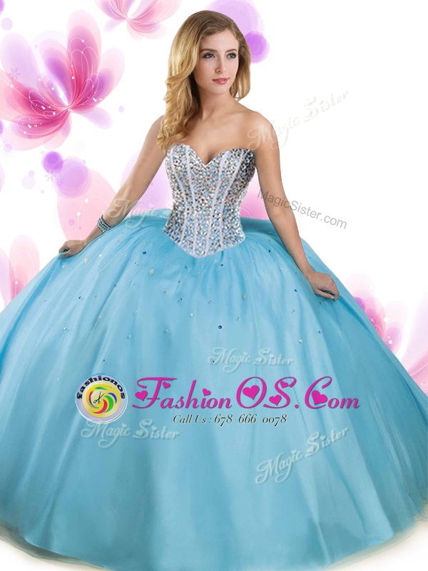 Sweetheart Sleeveless Lace Up 15 Quinceanera Dress Aqua Blue Tulle