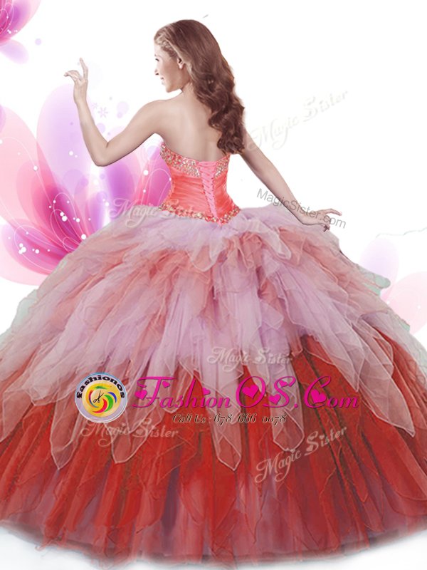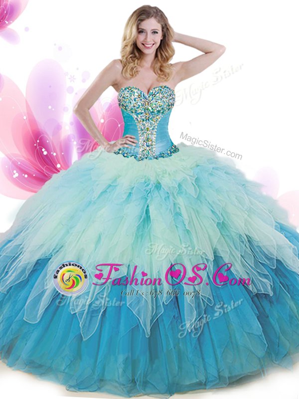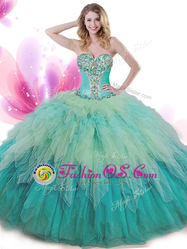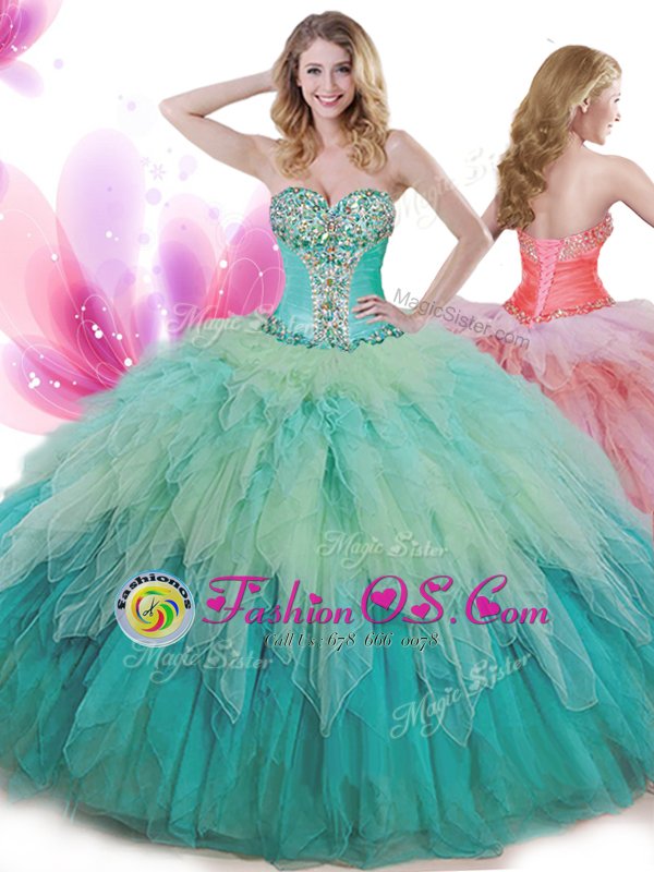 Multi-color Sleeveless Beading and Ruffles Floor Length Quinceanera Dress