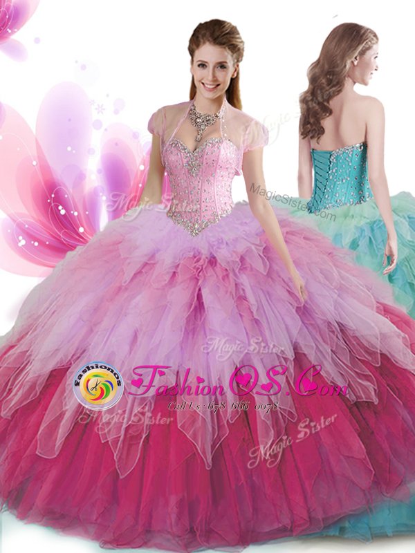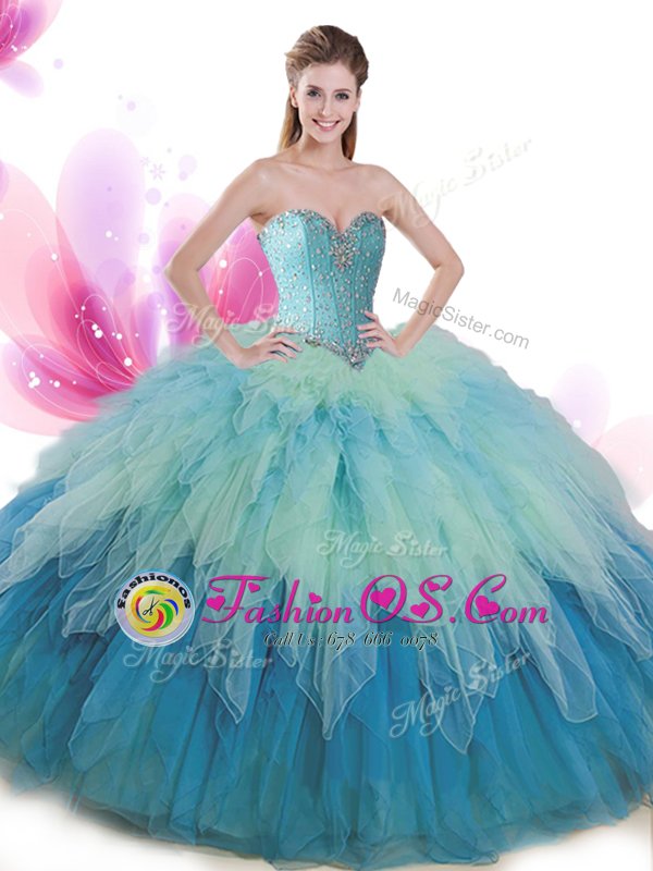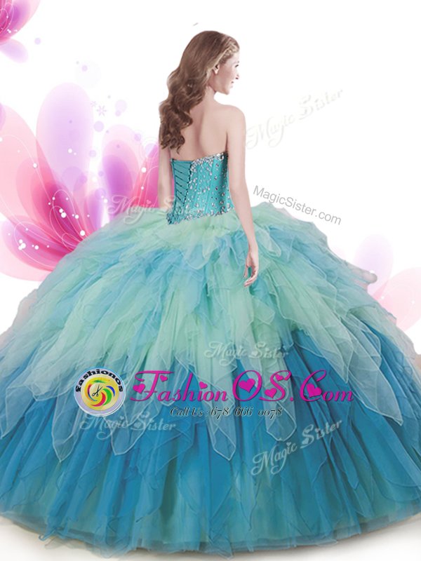 Elegant Multi-color Sleeveless Floor Length Beading and Ruffles Lace Up Quinceanera Dress