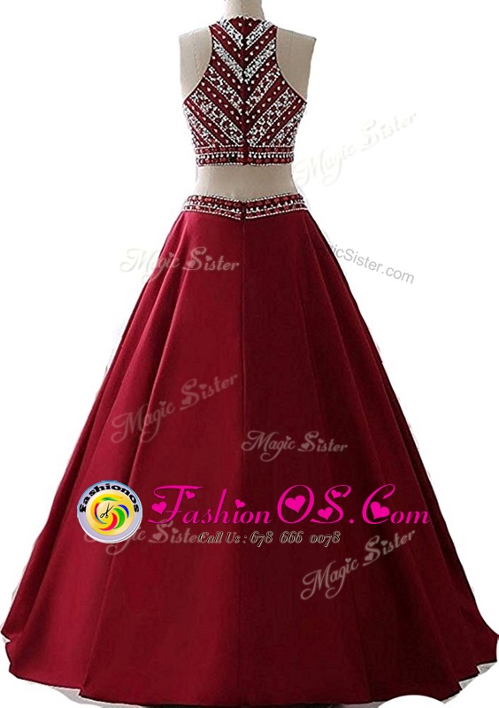 Navy Blue Chiffon Zipper Scoop Sleeveless Floor Length Prom Dress Beading