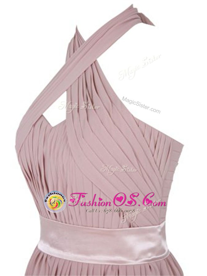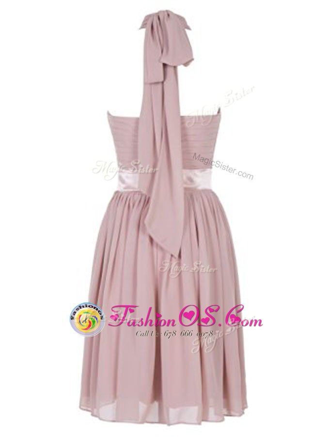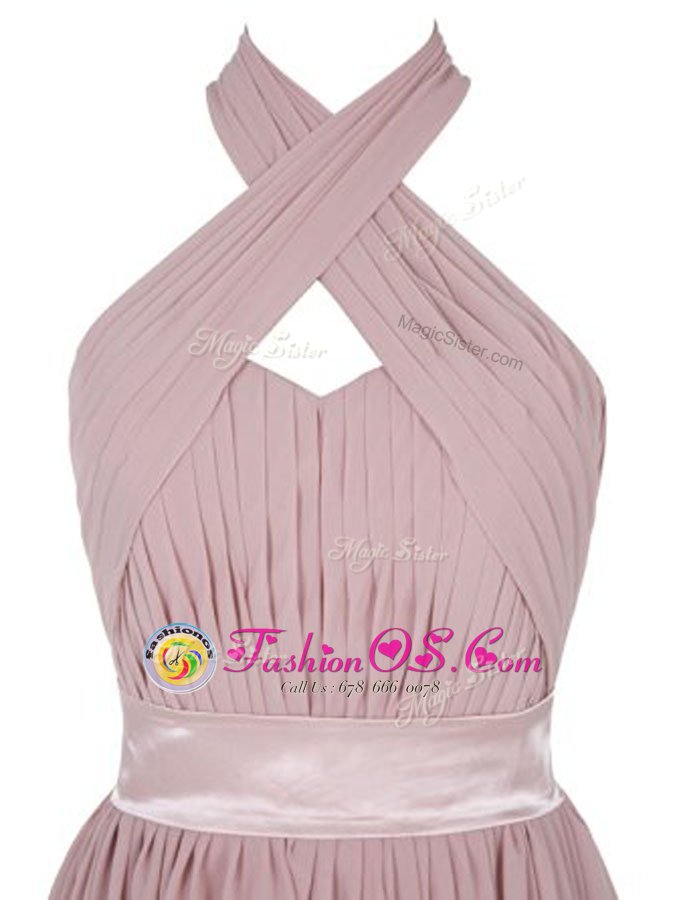 Attractive Pink Sleeveless Chiffon Backless Evening Dress for Prom and Party