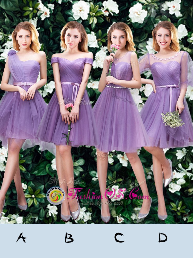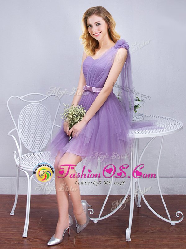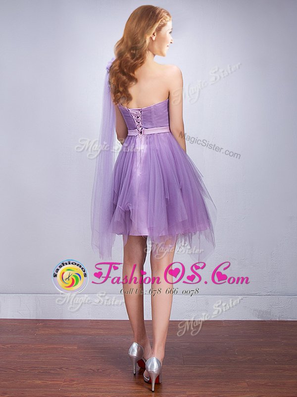Charming One Shoulder Sleeveless Tulle Quinceanera Court Dresses Ruffles and Ruching and Belt and Hand Made Flower Lace Up