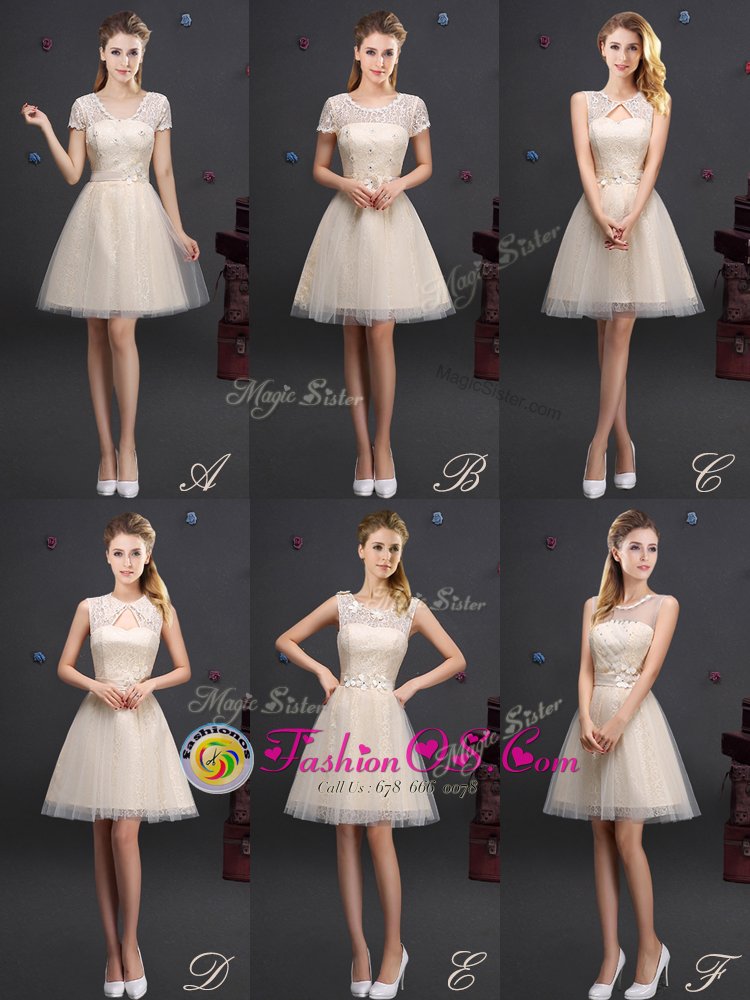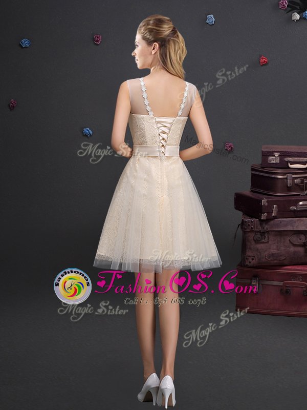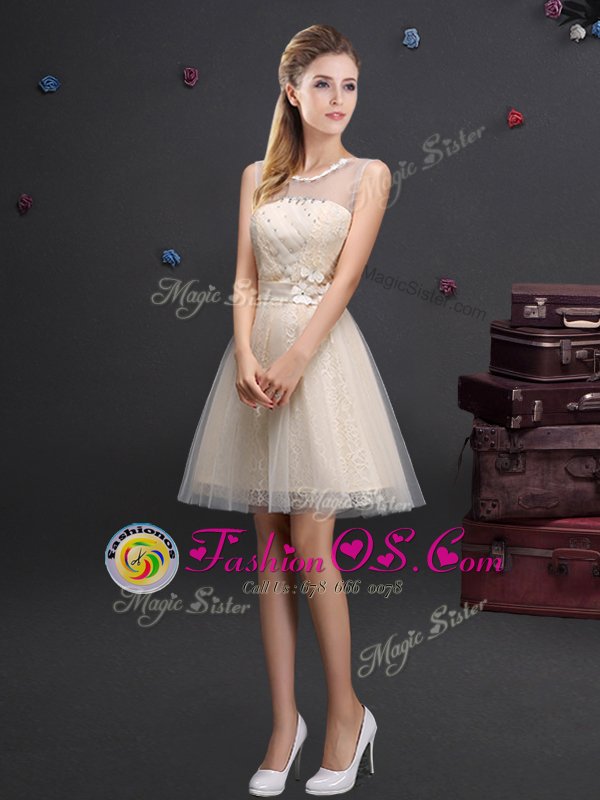 A-line Wedding Party Dress Champagne Scoop Tulle Sleeveless Mini Length Lace Up