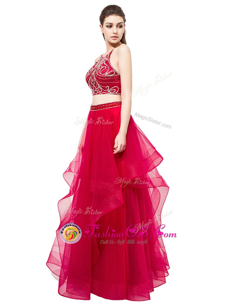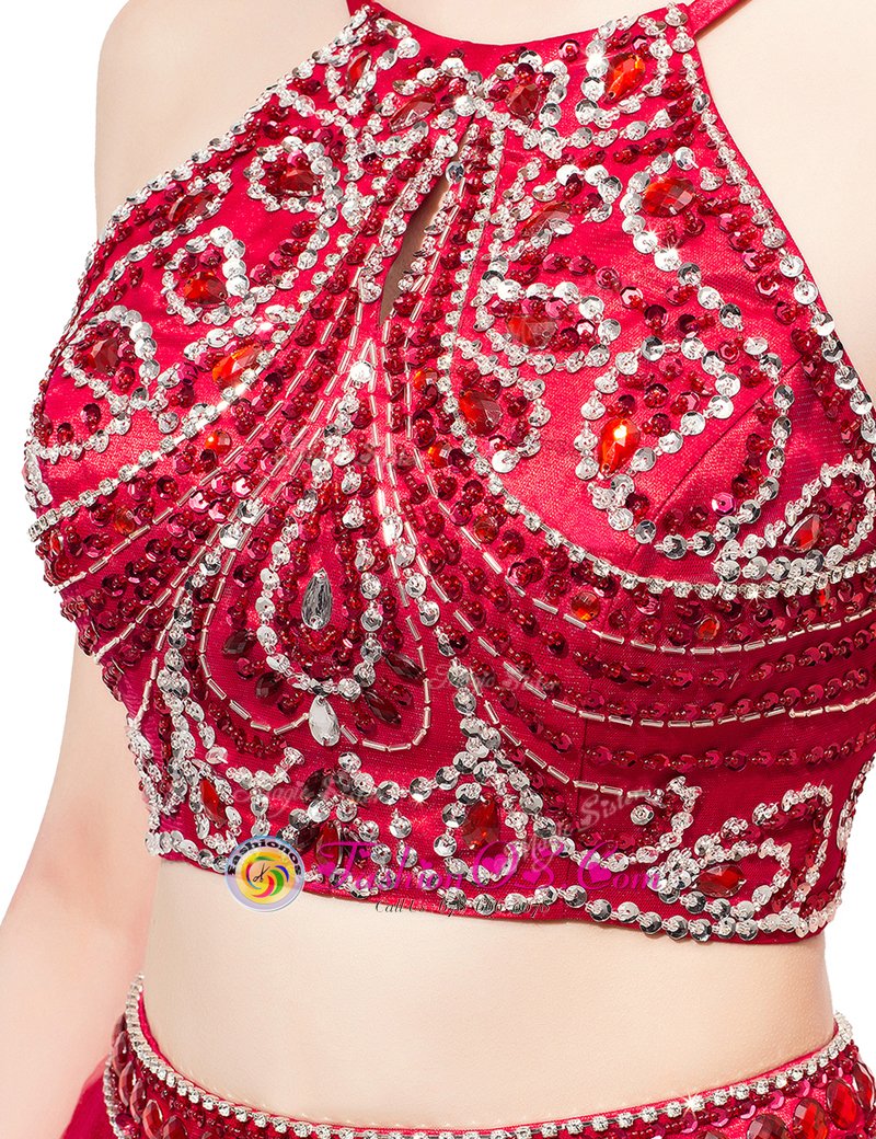 Fancy High-neck Sleeveless Organza Homecoming Dress Beading Zipper