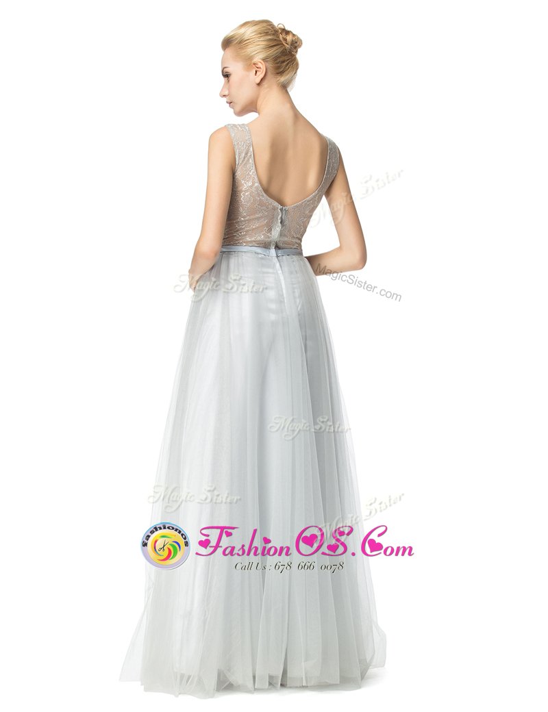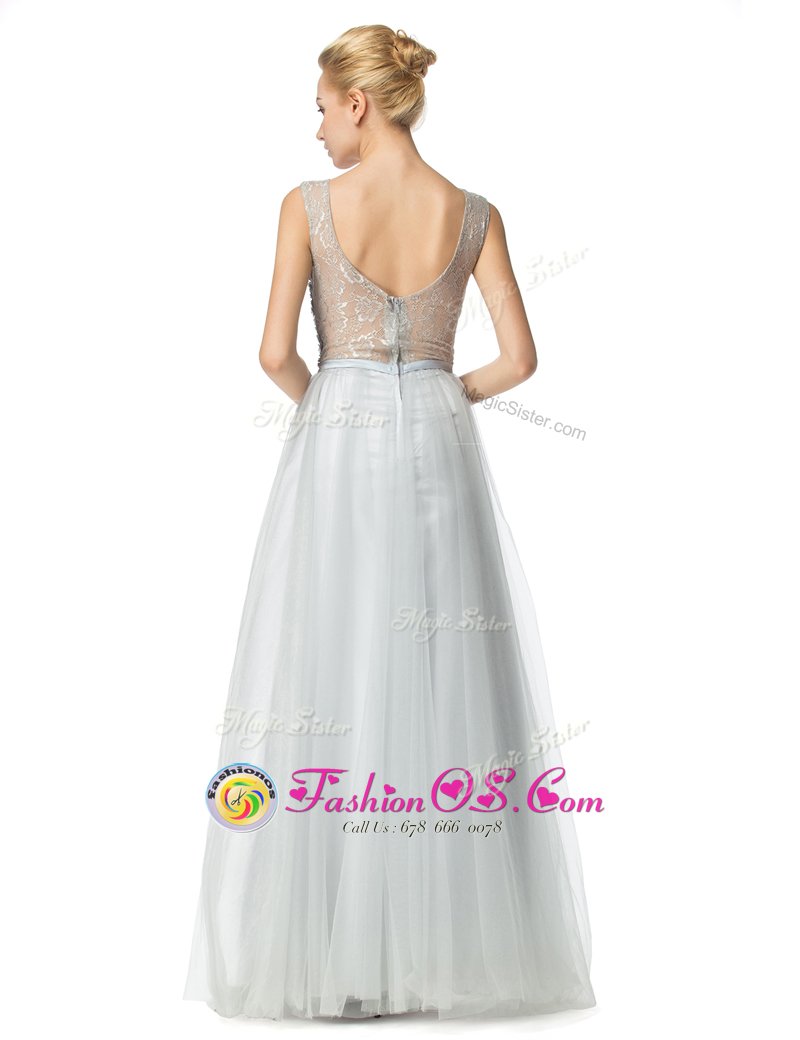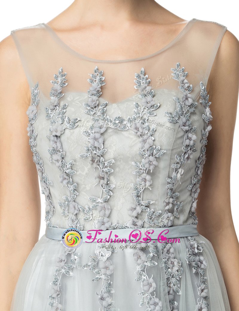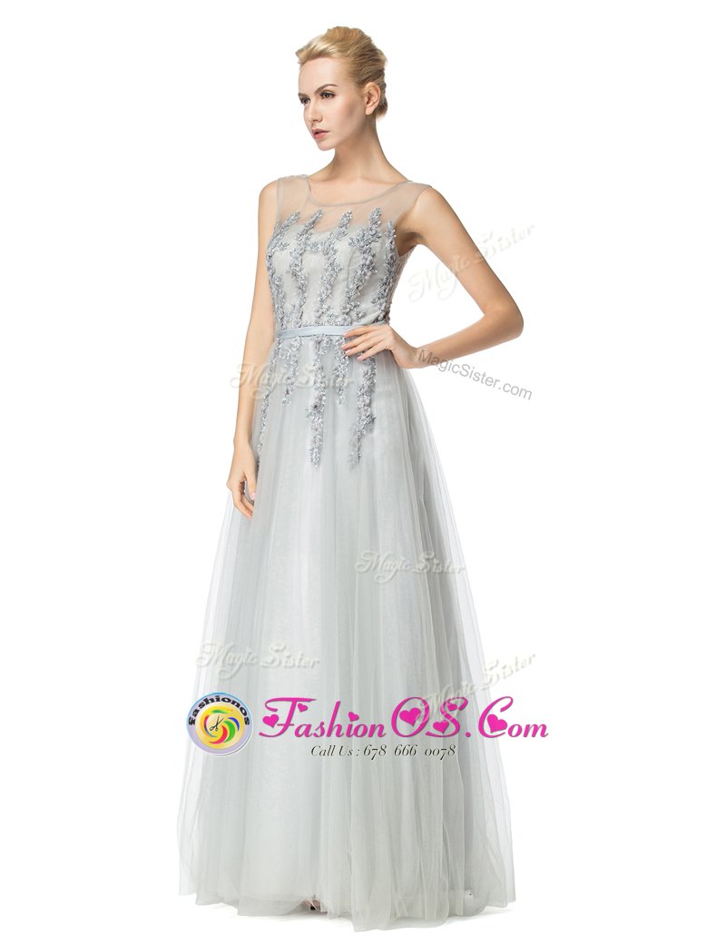Scoop Appliques Prom Dresses Silver Zipper Sleeveless Floor Length