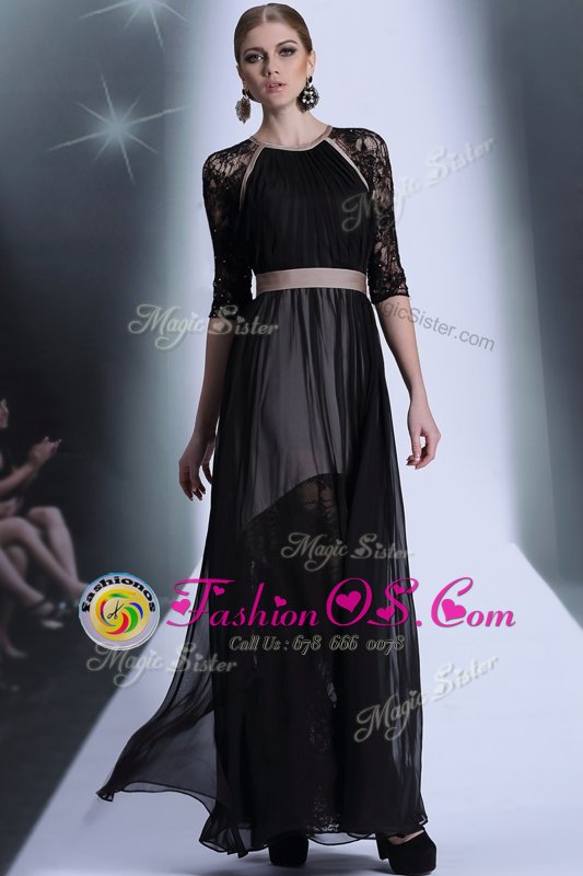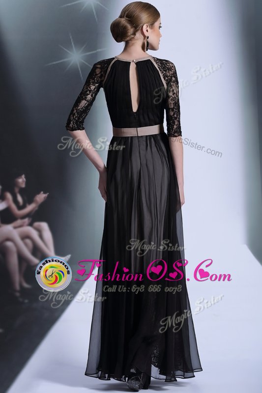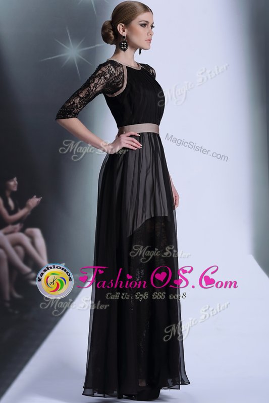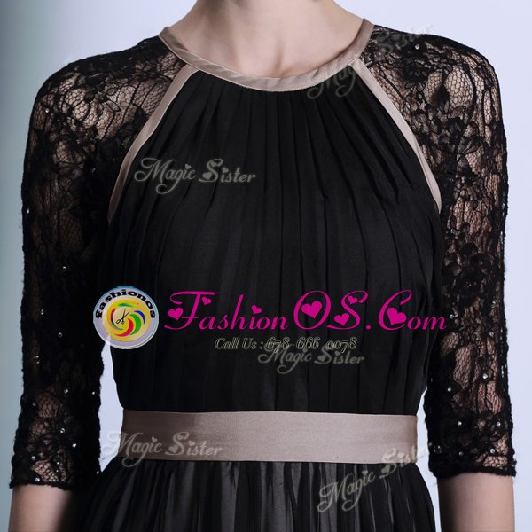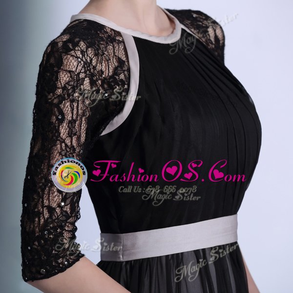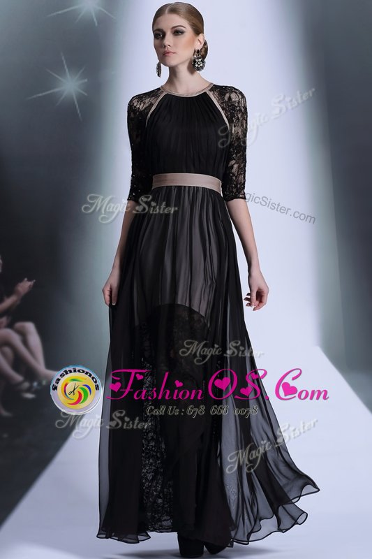 Fabulous Chiffon Scoop Half Sleeves Zipper Lace Prom Party Dress in Black