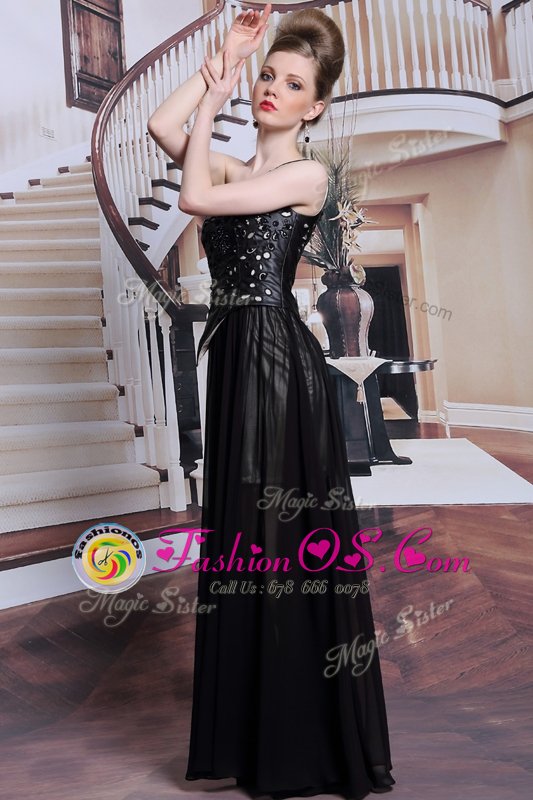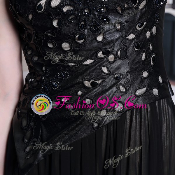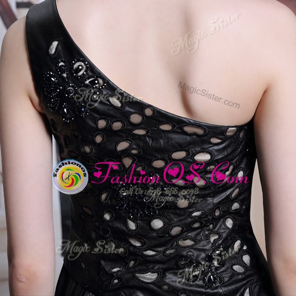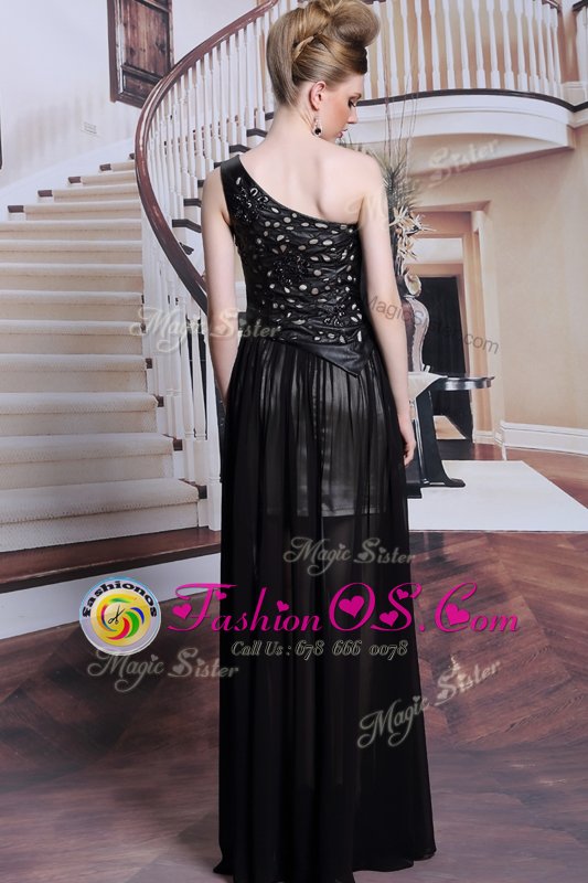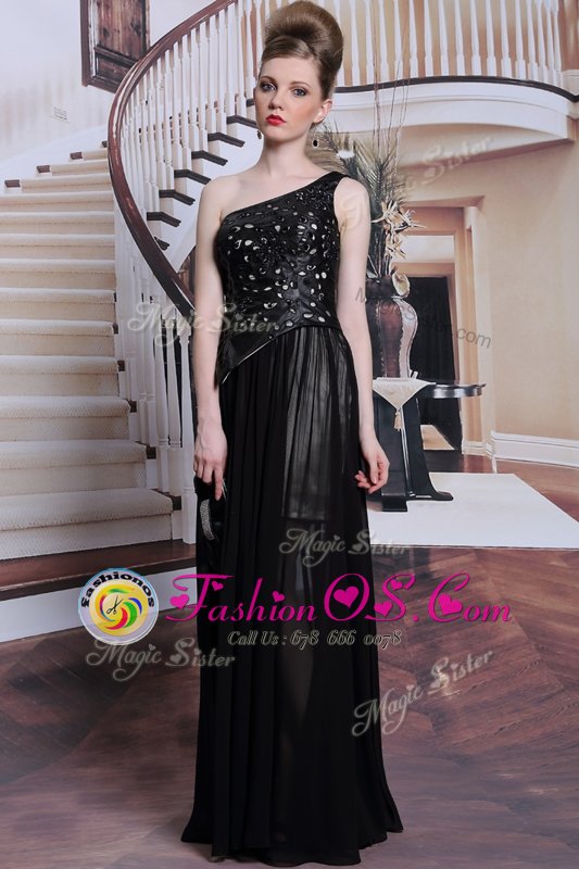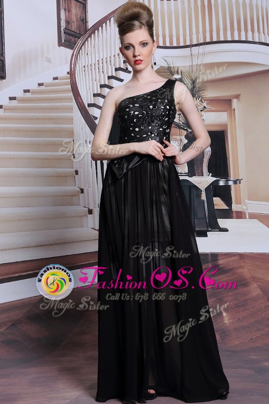 Flare One Shoulder Sleeveless Chiffon Appliques Side Zipper