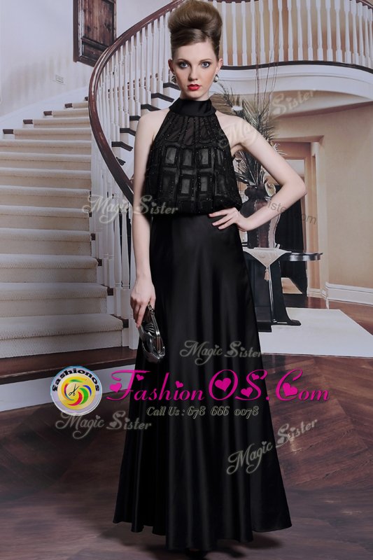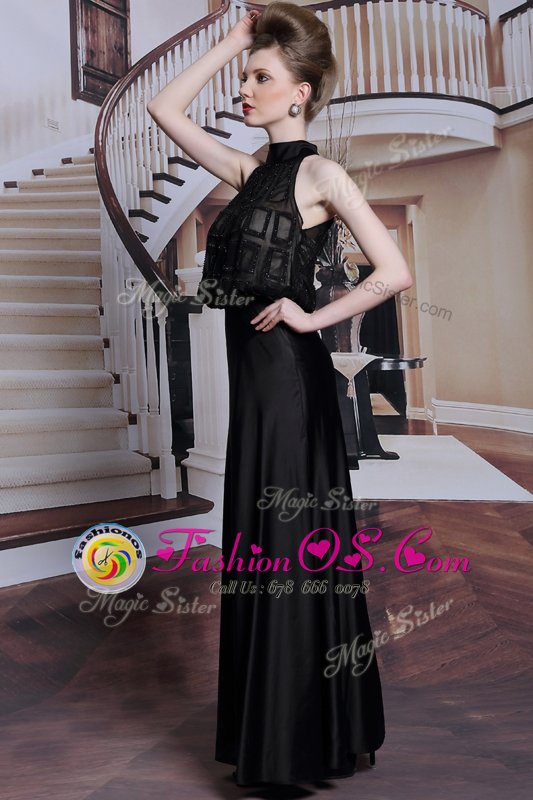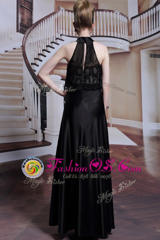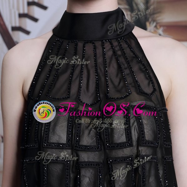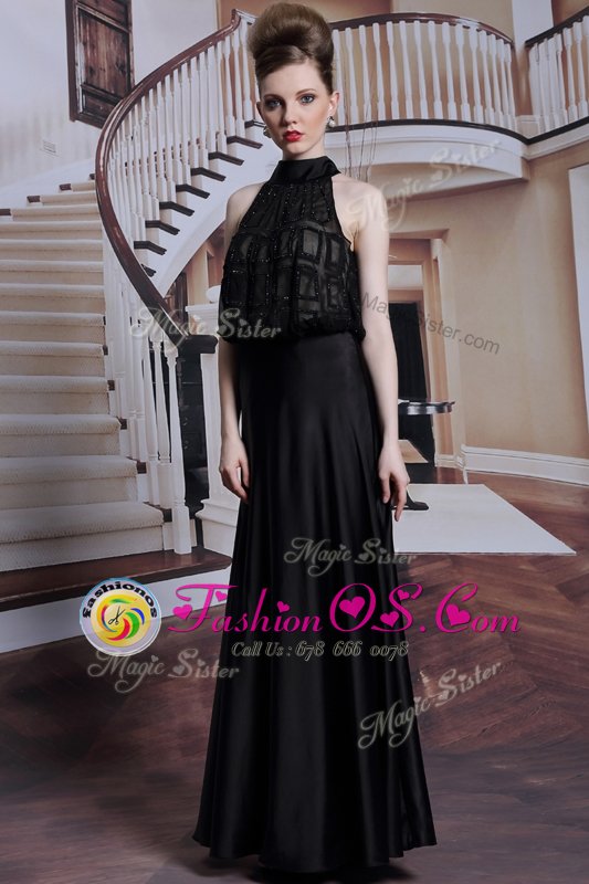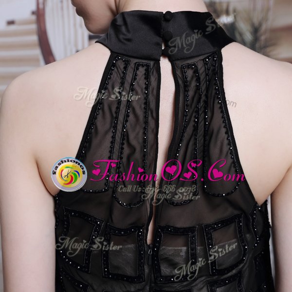 Stunning Sleeveless Floor Length Beading Zipper Prom Evening Gown with Black