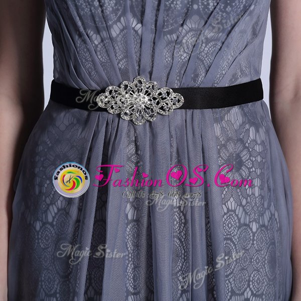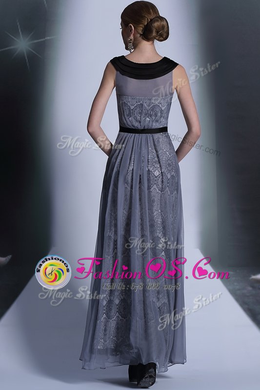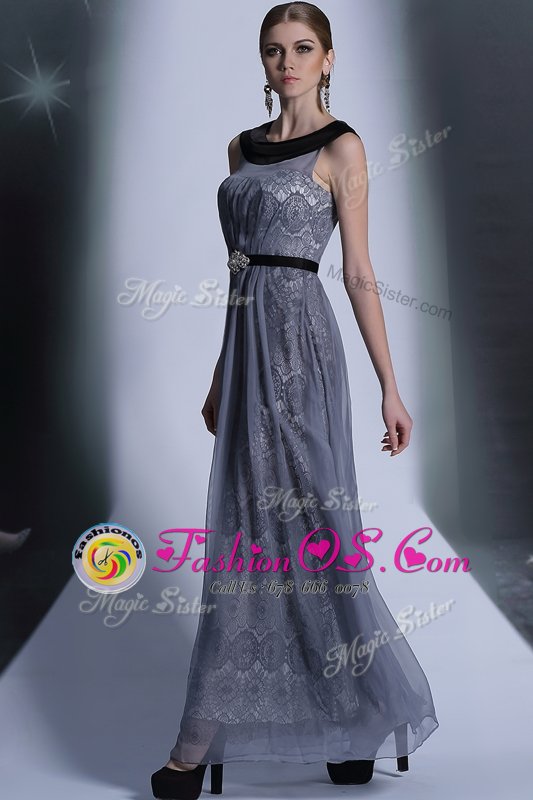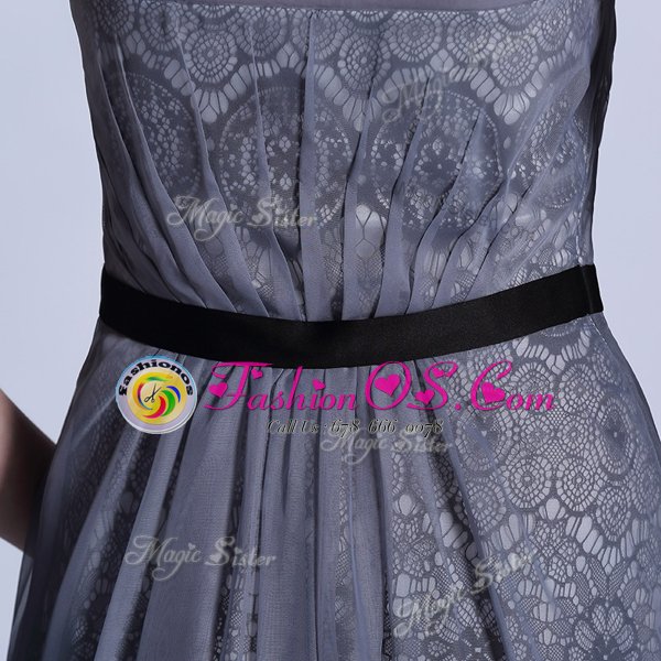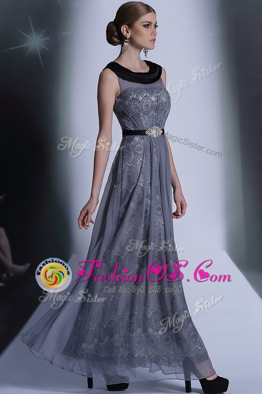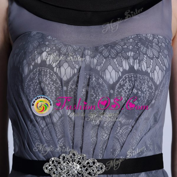 Tulle Scoop Sleeveless Side Zipper Belt Prom Evening Gown in Grey