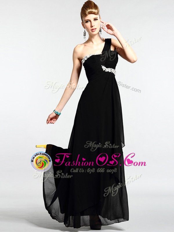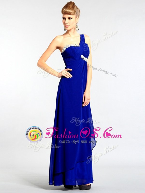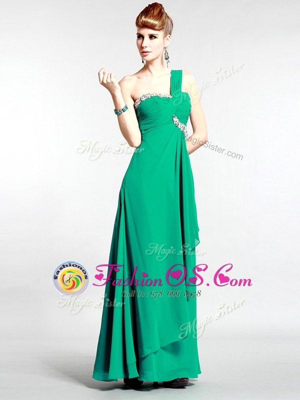 One Shoulder Green Sleeveless Floor Length Beading Zipper Evening Dress