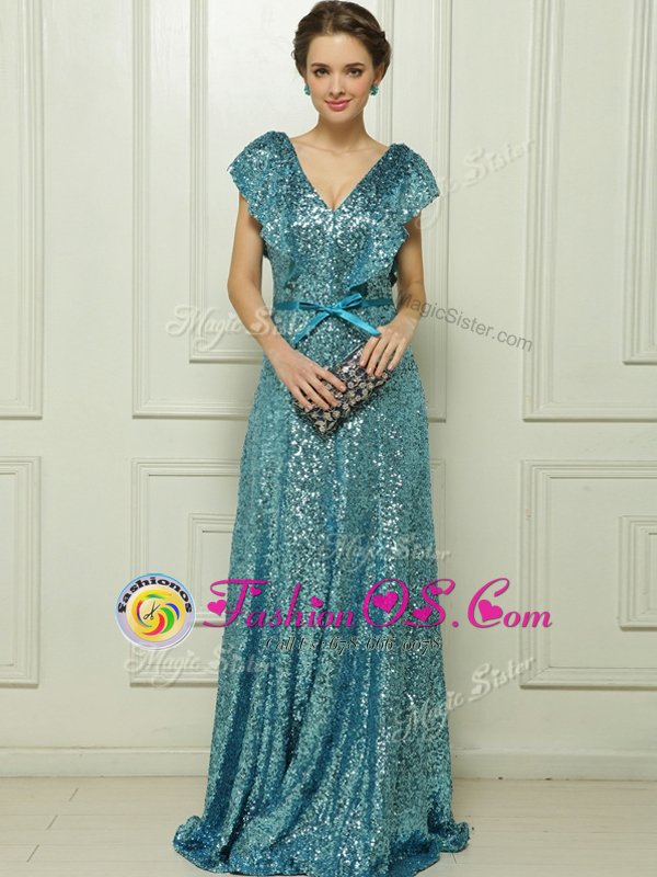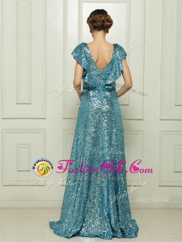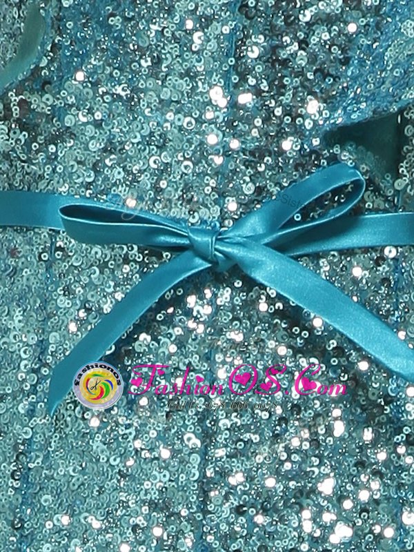 Sequins Teal Sleeveless Sequined Zipper Prom Evening Gown for Prom and Party