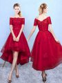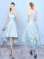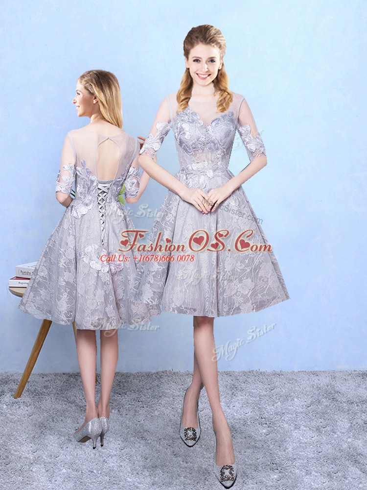 Colorful Grey A-line Appliques Wedding Party Dress Lace Up Printed Half Sleeves Knee Length