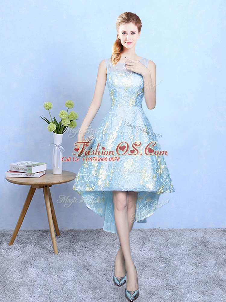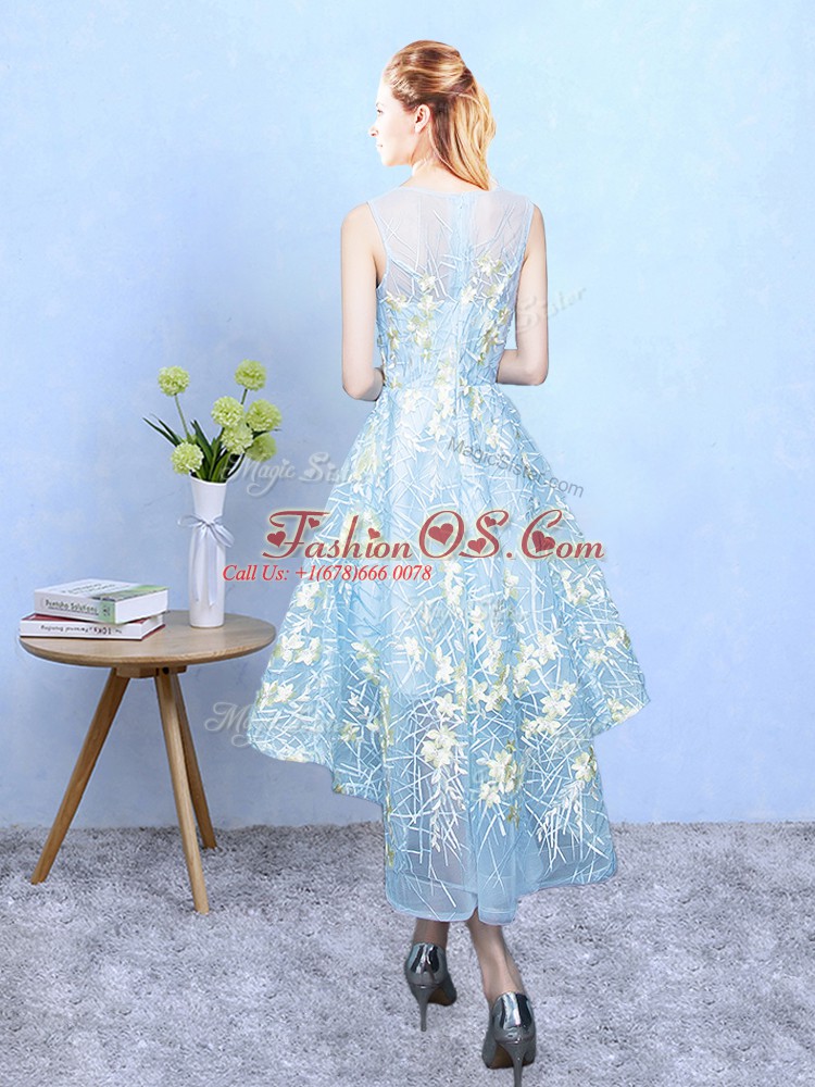 Aqua Blue Bridesmaid Dress Prom and Party with Embroidery Square Sleeveless Zipper