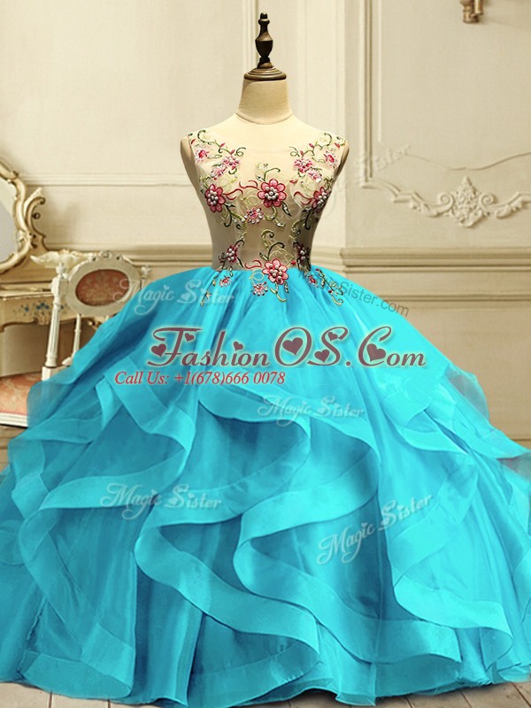 New Arrival Sleeveless Appliques and Ruffles Lace Up Sweet 16 Dress