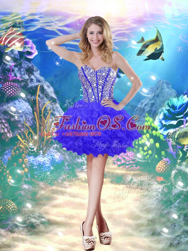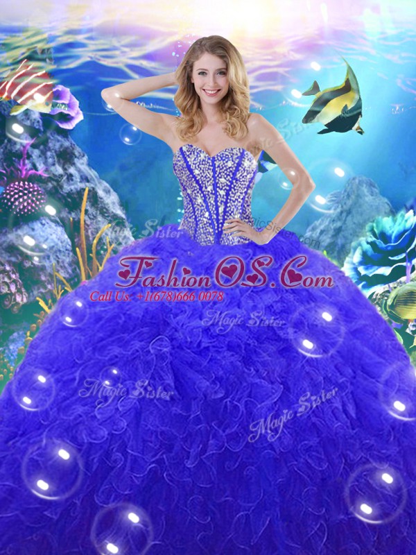New Style Floor Length Blue Quinceanera Dresses Organza Sleeveless Beading and Ruffles