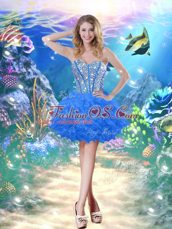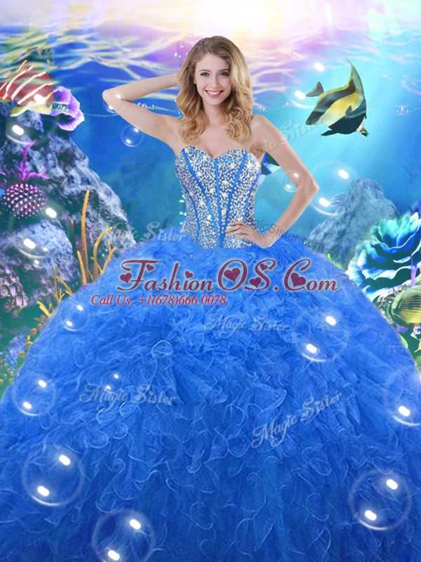 Excellent Floor Length Royal Blue 15 Quinceanera Dress Organza Sleeveless Beading and Ruffles