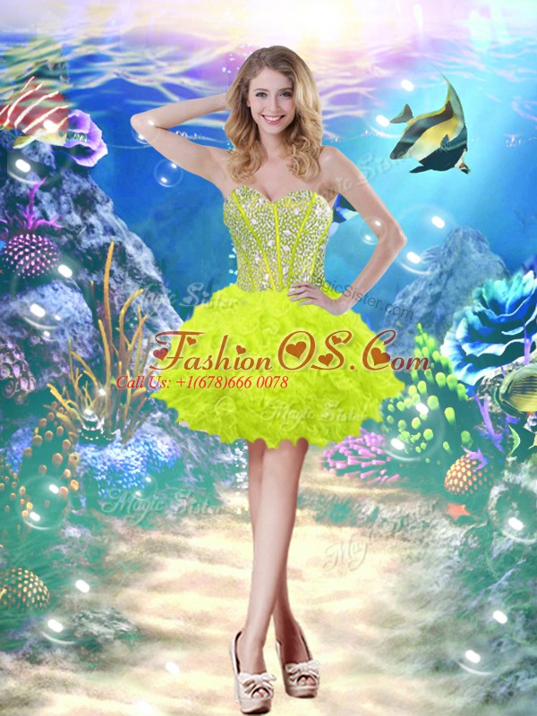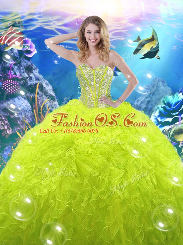 Ideal Yellow Green Organza Lace Up Sweetheart Sleeveless Floor Length Sweet 16 Quinceanera Dress Beading and Ruffles