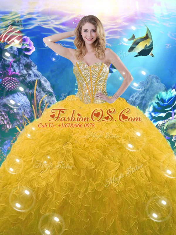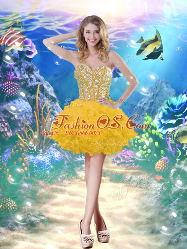 Super Gold Sleeveless Organza Lace Up 15th Birthday Dress for Military Ball and Sweet 16 and Quinceanera