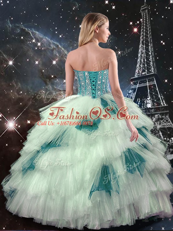 Multi-color Lace Up Sweetheart Beading and Ruffled Layers and Sequins Quinceanera Dresses Tulle Sleeveless