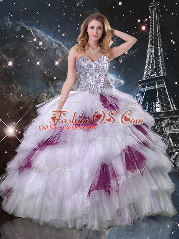 Multi-color Zipper 15th Birthday Dress Beading and Ruffled Layers and Sequins Sleeveless Floor Length